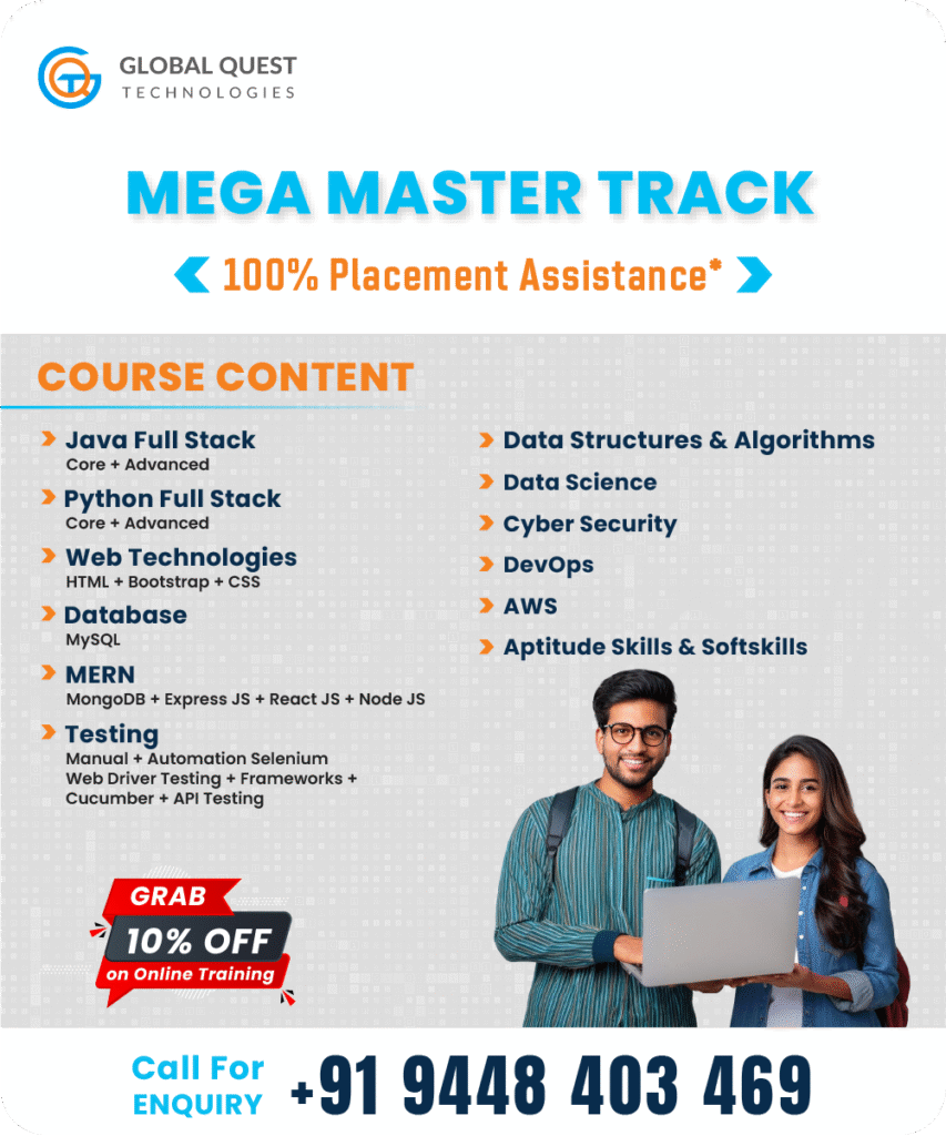 EXCELLENT Based on 2354 reviews Posted on Likitha K ATrustindex verifies that the original source of the review is Google. I had a really good learning experience at Global Quest Technologies. The Core Java and MySQL training was very practical and easy to follow. The trainers, especially Raghu Sir, were supportive and explained everything clearly. I feel much more confident.Posted on Nandana TTrustindex verifies that the original source of the review is Google. I recently completed the MySQL training at Global Quest Technologies under the guidance of Raghu Sir, and it was an excellent learning experience. The course was very well-structured, starting from fundamentals and gradually moving into advanced topics.He explained every concept with great clarity and real-time examples, which made it easy to understand even the complex parts of SQL. I am very thankful to Raghu Sir and Global Quest Technologies for their excellent training and support. I would definitely recommend this institute to anyone who wants to build strong MySQL skills. And also I have currently completed core java from global quest technologies as java full stack intern under the mentoring of Raghu sir.The classes are absolutely worth and he has coverd all the important core concepts in java.I would recommend the classes to all.Such a good class.Posted on Umamaheswara Rao UppuTrustindex verifies that the original source of the review is Google. It is a great Experience to coming here and learning the technology currently i have completed Core Java by Raghu sir, all the concepts is clear.. thank you so much GQTPosted on ARJUN ARJUNTrustindex verifies that the original source of the review is Google. Global quest technologies is providing the best trainer now i have completed my corejava classesPosted on Pruthvi ShivanagiTrustindex verifies that the original source of the review is Google. I had privilege of learning MySQL under the guidance of Raghu sir, and it has been excellent experience. Raghu sir is not only an expert in SQL but also a great mentor, His classes are well paced, engaging, and perfectly suited for both beginners and advanced learners.Posted on Munganda ChandrikaTrustindex verifies that the original source of the review is Google. Trained by professional corporate trainer Raghu sir. Gained practical experience in Java and MYSQL.Posted on Jyothirmayi RunkuTrustindex verifies that the original source of the review is Google. I am so thankful to GQT (Global Quest Technologies) for providing excellence knowledge and giving practical experience through out the training . Thank you to GQTPosted on Satish TiwariTrustindex verifies that the original source of the review is Google. It is a great expreince to coming here and learning the technology currently i have completed SQL by Raghu sir, all the concet is cleare... thank you so much GQTPosted on InduTrustindex verifies that the original source of the review is Google. Raghu Sir’s SQL sessions were not just about queries and commands, but about truly understanding how databases think. His way of connecting real-life scenarios with SQL concepts made the subject come alive. What I liked most was his patience in clearing doubts and the way he built confidence in approaching complex problems step by step. It was more than a class – it was an experience that strengthened my foundation in SQL. Honestly i liked it. Thank You sir [Indra]Posted on Reena ReenuTrustindex verifies that the original source of the review is Google. It was an good experience being in this soft skill class where i can learn more things like how to communicate, manage the things . Where i learned how to perform in group discussion, interview and built my confident. It was an amazing class and i am very glad and thankful for being in sir class. The MYSQL class which gives a good experience on how to solve queries and learn from it , the topic which was covered like ddl , dml , dql, clause, function, transaction, er diagarm ,view ,stored procedure, triggers , variables .Verified by TrustindexTrustindex verified badge is the Universal Symbol of Trust. Only the greatest companies can get the verified badge who has a review score above 4.5, based on customer reviews over the past 12 months. Read more